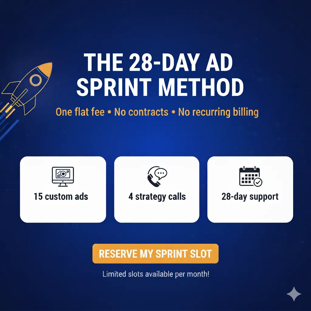 Turn cold clicks into warm sales with our proven 28-Day Sprint Method. Choose the package that fits your current ad experience level.